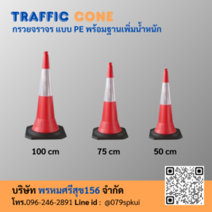 กรวยจราจร แบบ PE พร้อมฐานเพิ่มน้ำหนัก